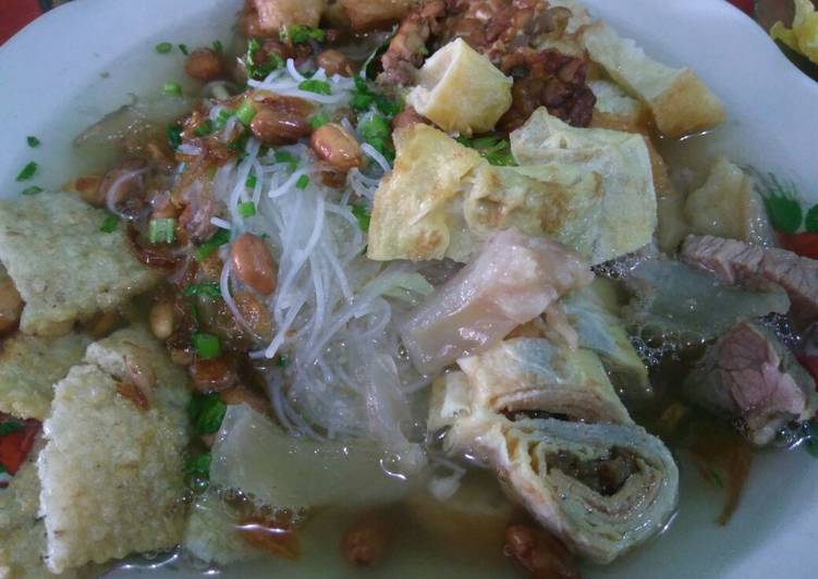 campuran mie thoprak ini juga sangat variatif dan bermacam macam mulai dari cakue atauroti chinese yang biasa ada di campuran bubur ayam bagi yang nggak tau cakue itu apa, terus ada bihun mie kuning daging sapi daun sup bawang goreng lalu kuah nya yang begitu gurih karena si daging sapi nya lama banget di rebus di dalam wadah kuah si mie thoprak ini hingga memang benar benar kaldu sapi nya sangat terasa dan bukan saja hanya numpang lewat saja di mulut, khusus nya semarang Open trip semarang, paket tour semarang, paket wisata semarang.