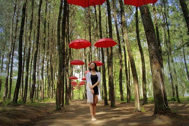 • Kemudian mengunjungi Hutan Jawatan yang merupakan kawasan hutan hijau yang asri dan ditumbuhi berbagai jenis tanaman. Disini juga meempunyai spot foto yang unik berupa hiasan payung wana warni yang dipajang di langit-langit